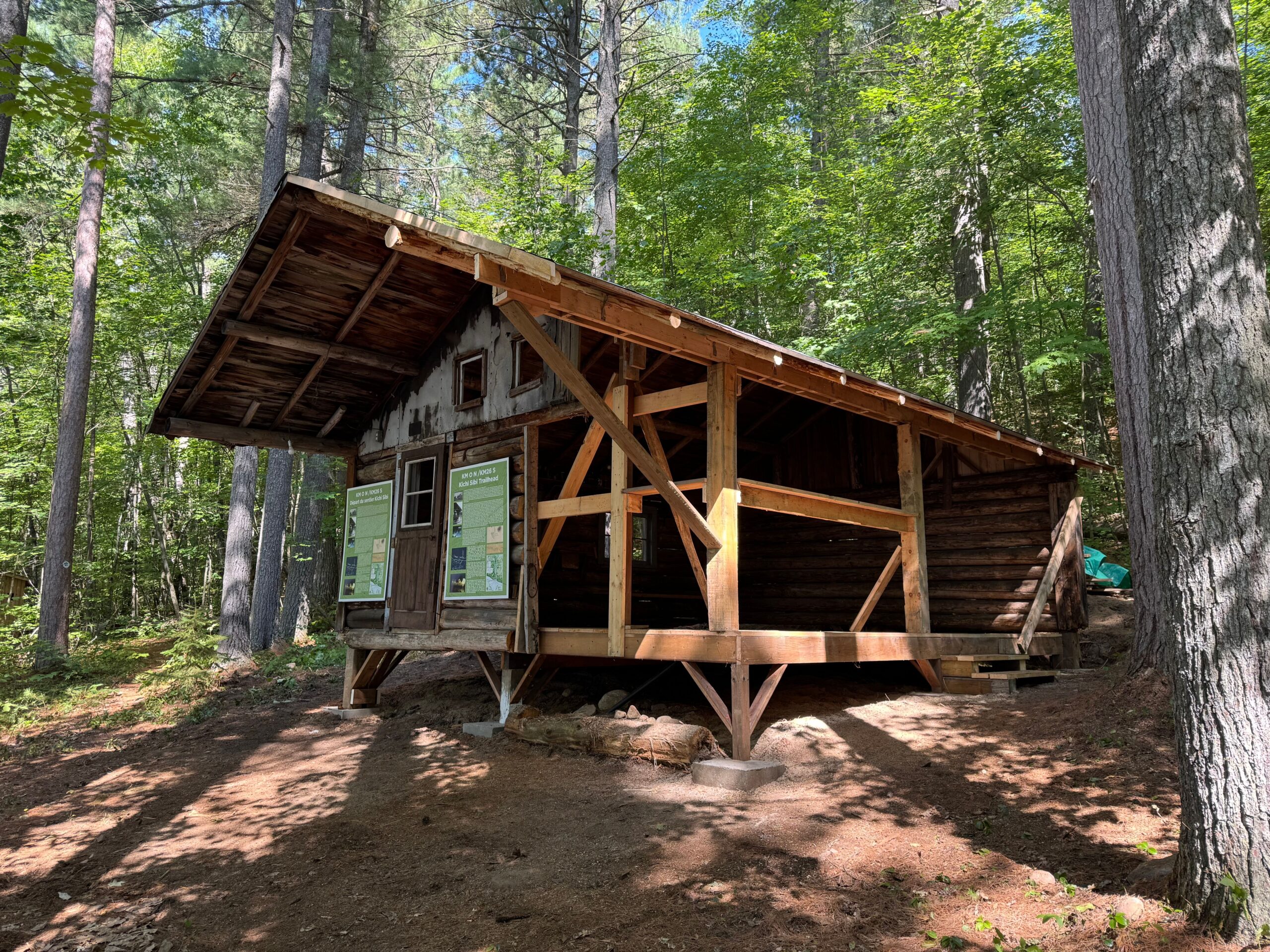 In 2025, Friends of Dumoine acquired the lease at the beginning of the Tote Road Trail. This enabled us to extend the trail 500m to its true starting point; build a public campsite at km 0 on the Ottawa River; complete Phase One of the restoration of the 1918 Rangers' Cabin located on the new lease; place signs explaining the rich history of this site on the shelter; and place artifacts on the trail to show how the road was built. In 2026 we will start Phase Two of the cabin restoration.