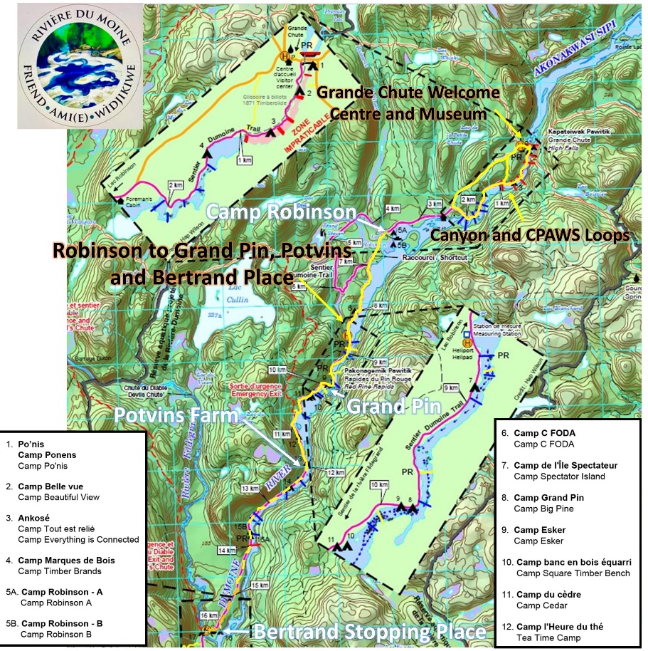 | Ryan’s Chute** (km20.4) | Bertrand via Kickapika Loop | ~5.5 km | 5 to 7 hours |